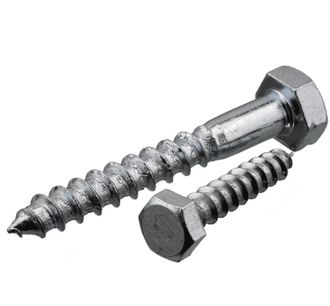 Для крепления деталей к деревянному основанию применяются глухари (шурупы с шестигранной головкой), изготовленные по DIN 571 (ГОСТ 11473-75). Изготавливают их из оцинкованной конструкционной углеродистой качественной стали 08кп, 10кп, 1022, а также из нержавеющей стали марок А2 и А4, диаметром от 6 до 20 мм. На фото - болт-шуруп из нержавеющей стали А2: